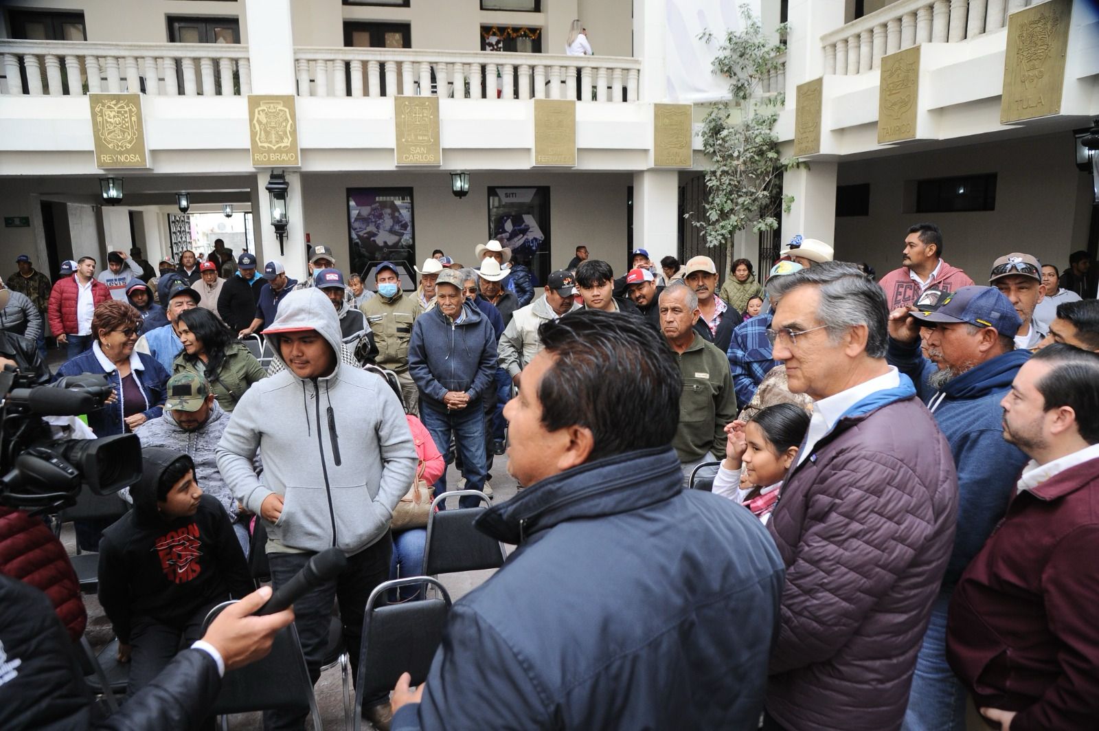 “Cuentan con el gobierno; el gobierno siempre estará de su lado para buscar las mejores formas de conciliar y aprovechar las oportunidades que nos da nuestro territorio, nuestro gran estado de Tamaulipas, dejando los beneficios correspondientes a su gente”, añadió.