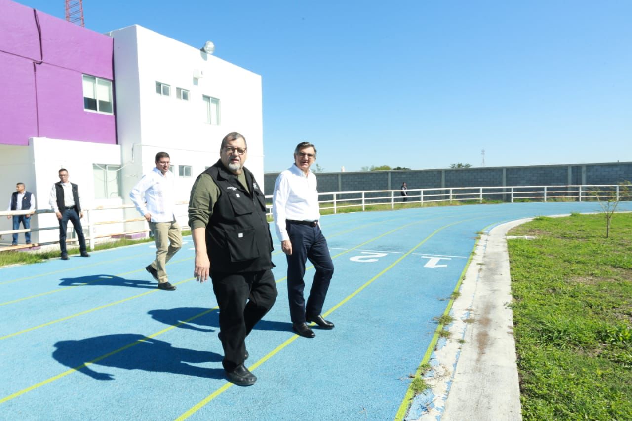 El gobernador también supervisó las áreas de cocina, enfermería, atención médica, lavandería, bodega, el salón de enseñanza y el espacio deportivo que incluye una pista de tartán, y consideró que este Centro del DIF Tamaulipas, el cual se encuentra totalmente bardeado y con iluminación suficiente, cuenta con la capacidad operativa y reúne las condiciones para brindar un trato digno y humanitario a quienes lo requieran ante una probable deportación masiva de Estados Unidos.