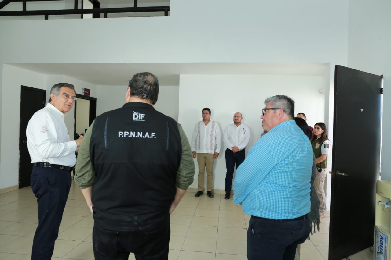 Ciudad Victoria, Tamaulipas.- Con el propósito de estar debidamente preparados ante cualquier contingencia que pudiera presentarse en el tema migratorio, el gobernador Américo Villarreal Anaya y la presidenta del DIF Estatal, María de Villarreal, supervisaron la tarde de este lunes las instalaciones del Centro de Atención y Protección a Niñas, Niños y Adolescentes, el cual podría habilitarse como un albergue para las y los migrantes deportados de Estados Unidos.