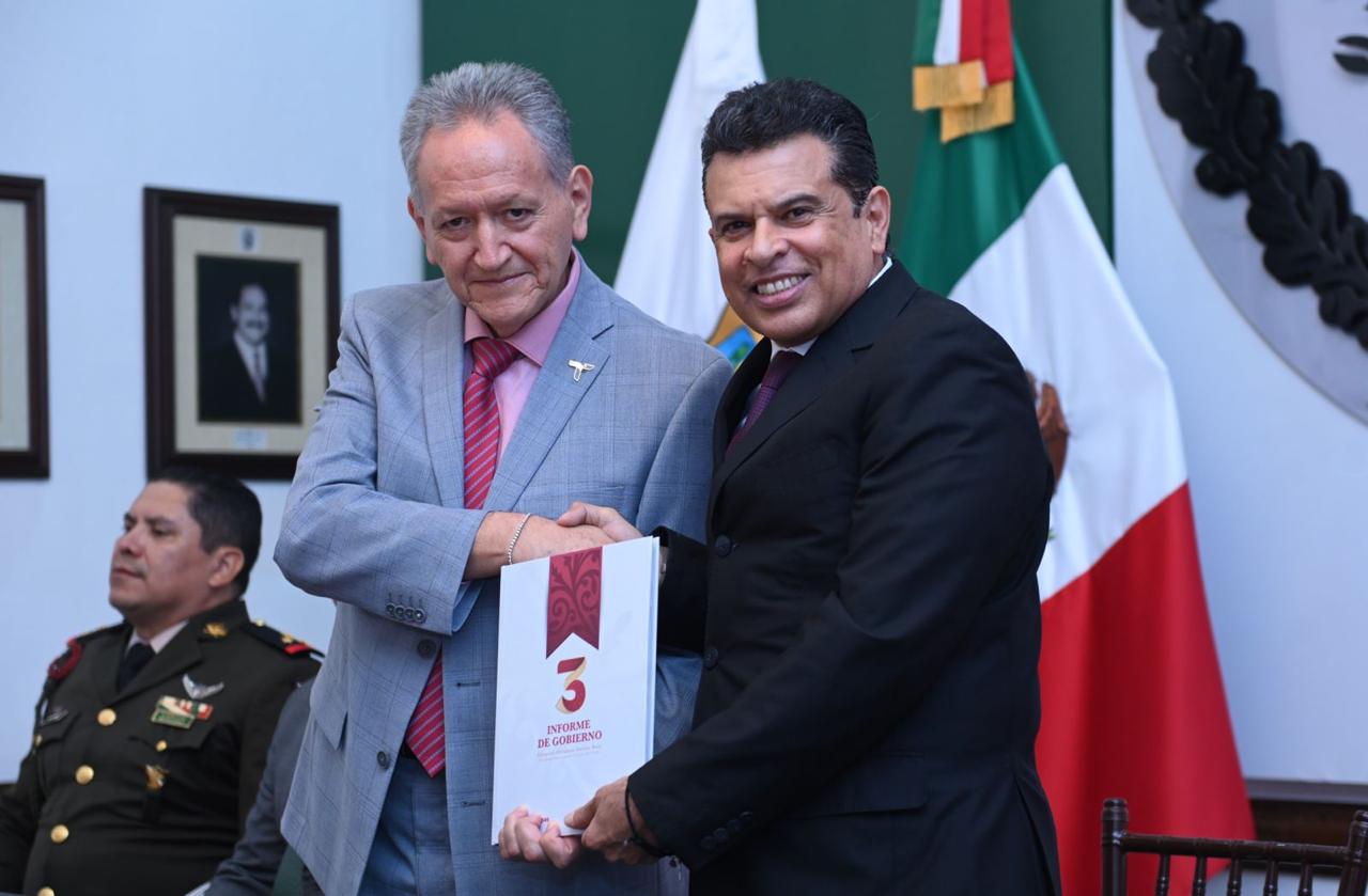 Cd. Victoria, 3 de septiembre 2024. – A seguir transformando un futuro de bienestar y desarrollo próspero para Victoria, se comprometió el Presidente Municipal Eduardo Gattás Báez, al rendir este martes su Tercer Informe de Gobierno ante la sociedad victorense, en el que recibió el respaldo del gobernador Américo Villarreal Anaya para consolidar los proyectos que se tiene en marcha en la Capital del Estado.